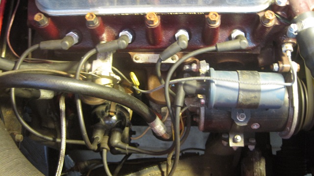 Off to visit Shannon Sasser in Houston, TX. He has a 1957 MGA. Some time ago it was reported to have issues with cooling, compression, fuel smell, bad running. Most of that has been fixed, but not it won't start, sometimes. A head scratcher needing diagnostics. Cranking, but no start. A sniff of starting fluid, but still no fire, so no spark. Test light on the ignition coil, lights up okay. Test light on thr distributor points wire, flickers when cranking. However, the light does not go completely out, but switches from bright to dim. So there is resistance in the circuit, meaning dirty contact points, or points not closing. Remove distributor cap, and sand the points, but no improvement. Remove distributor, sand the points some more, but still no ground contact through the points. Time to remove the points and see how far we can throw them. install new points, adjust, test ground continuity, reinstall the distributor, set static timing, and it fired right up on the first try. Couple minutes to warm up end fine tune it, and all is right with the world.