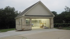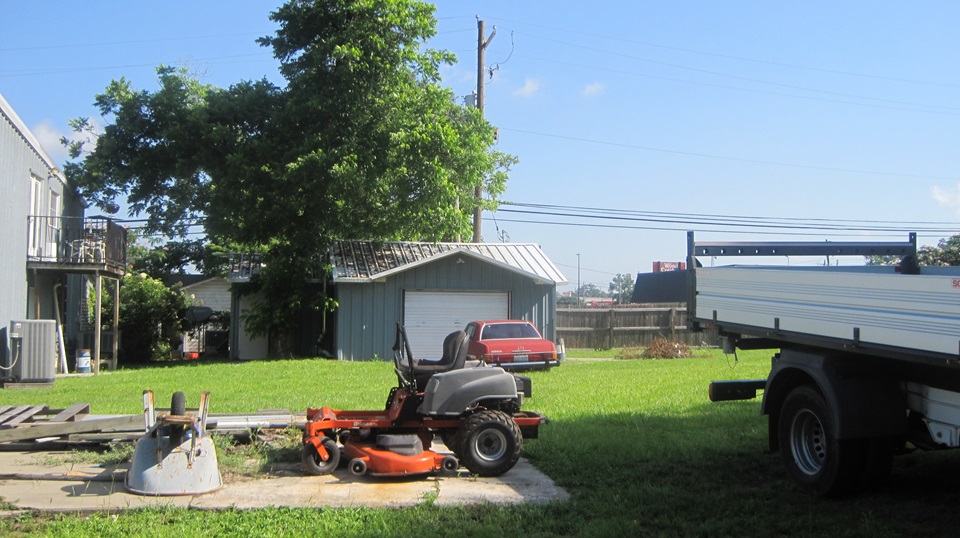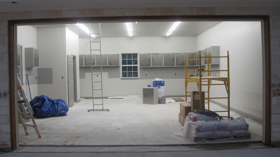 But then we figured out why. Jimmy was very near completion of his new workshop garage behind the house. Sweet. That's a 16x8 foot door, high ceiling, lots of lights and power, tall roof with attic space, and yes he is putting in a cargo lift elevator.