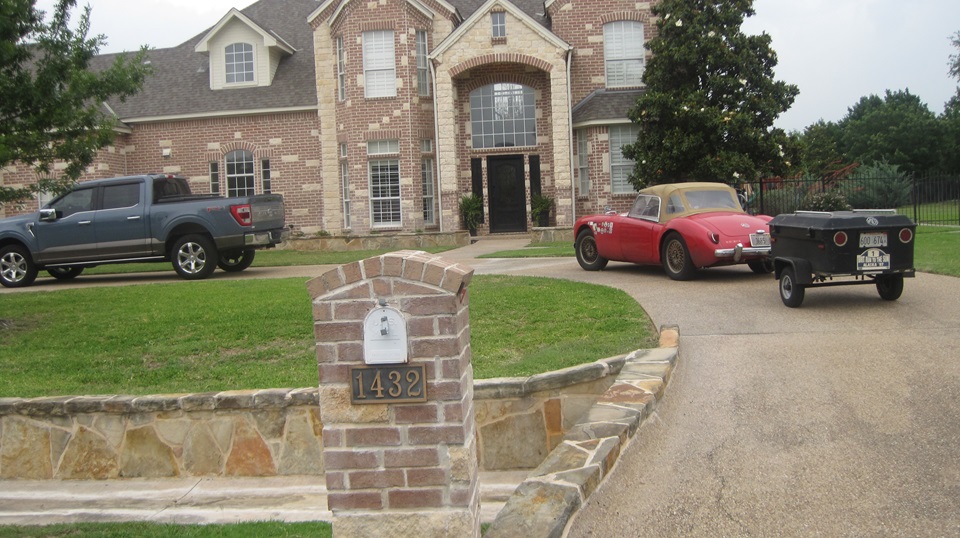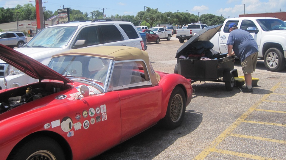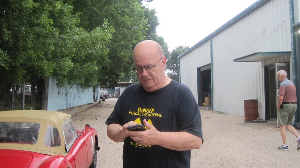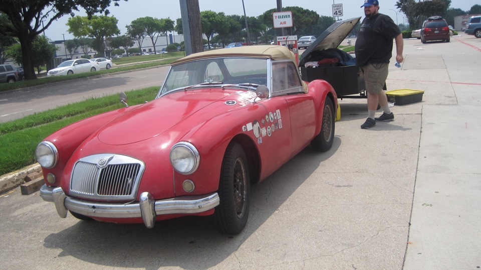 We had a nice long chat with staff and customers, and then it was time to roll out again. We jumped on I-20 West, only 37 miles to go,but it it was a disaster. Mostly stop and creep, stalled vehicles and an accident in the left lane, construction closing the right lane, lots of traffic needing to merge in just killing the traffic flow. At least the MG was running very well, the bilge blower keeping the carbs from boiling alcohol fuel, the nice original cell core radiator keeping the coolant temperature steady on scale, it never missed a beat the whole way. ... We finally arrived to visit Jimmy Hilton SU carburetors in Aledo, Texas .