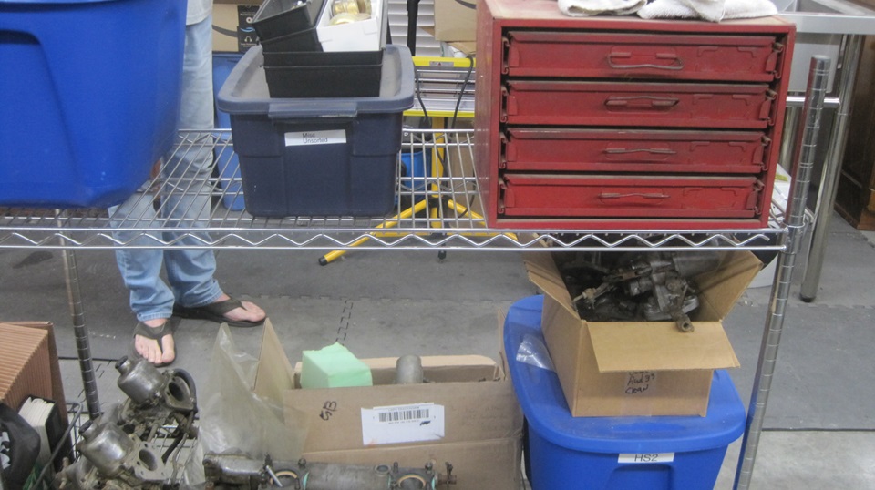 Immediately there was a customer checking his cell phone. He had just brought in an MGB project car, which he bought from this shop two years earlier. At first glance it didn't look too bad, but looking a bit closer, it turned out to have badly rusted floors. Also the air cleaners had been removed as well as the shifter extension housing. Being left outdoors and subject to rain, it had water in the engine sump and in the gearbox. Seems the project turned out to be more than the enthusiasm, so now he was selling the car back to the shop, and likely the car will be split for parts.