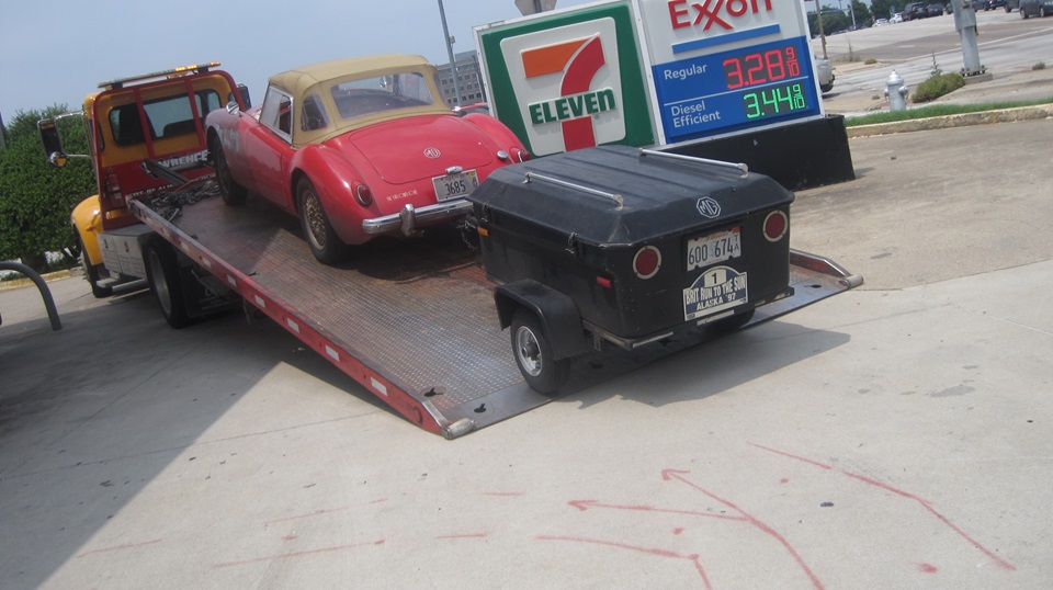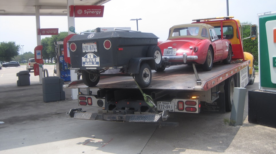 We know the drill. Grab the computer, open the Friends spread sheet, and check on who we know in northern Texas. A few phone calls later we have a plan. Remember Sporstcar Warehouse from two days earlier? Less than three miles away, friendly and helpful. Call for a tow truck. Waiting for a call-back from the tow company, we had enough time to grab the failed alternator out of the trailer and walk it two blocks to the O'Reilly store for the exchange. Just returning to the car when the phone rang, and the truck will be here in ten minutes. It's a little embarrassing to need towing, but it doesn't happen very often. Last time was August 2014 when the engine broke a piston. So nearly 10 years and 265,000 miles, doesn't seem too bad.