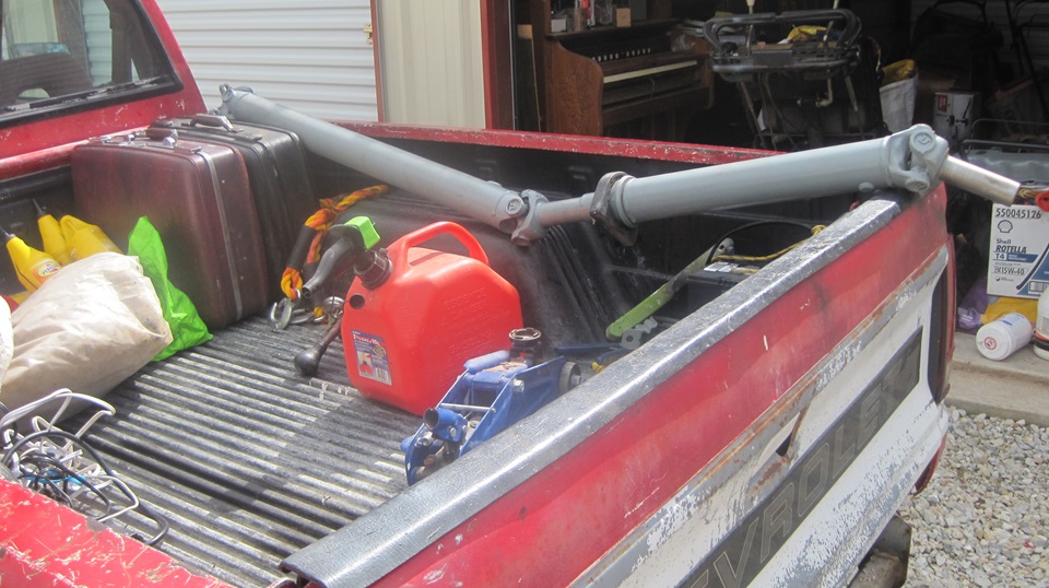 It didn't look too bad, just needed a little penetrating oil on the hood hinges and latch parts after sitting out for two years since last touched. There were two old fuel tanks in the load bed, one of which was obviously not for this vehicle. The second one was same style as the installed tank, but missing the fuel pump and fuel level sender unit. The installed tank looked complete, not known if it was original issue or replacement. We did find the wiring harness with proper 4-pin tank connector, providing ground and power for the pump (switched by the computer). and resistance signal terminals for the gauge sender unit. Fuel filter and all plumbing still there, tank to filter and filter to pressure regulator at the engine. The propshaft was missing, but we have a new one and the bolts to install it. Best guess is that the propshaft may have been rmoved to gain access to the filter and plumbing, but work stopped there leaving the vehicle abandoned until it was passed on.