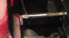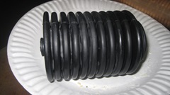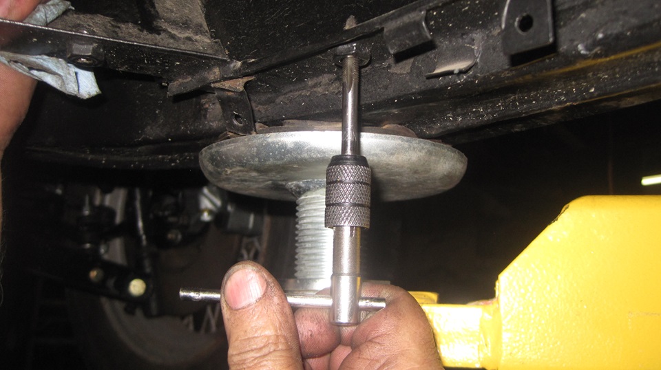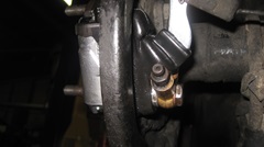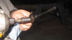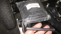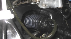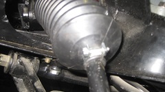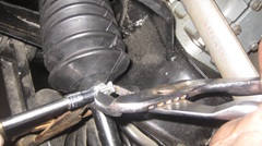 Remove the larger clamp, pry the boot big end open and insert the injection hose a couple inches right up top. Move the rack to center of motion to allow some volume inside the boot, but not to stretch or pull the boot off of the rack housing. Pump in oil until it begins to run out around the hose.then pull the hose out and close the big end of the boot. We get about 4-fluid-ounces of oil into the boot on the first pass. -- Holding the big end of the boot in place, we move he rack slowly left and right through full travel to move most of the oil from the boot into the rack housing. Then "rinse and repeat" putting another 4 ounces of oil into the boot. Install the big end clamp to seal the rack with oil inside (6 to 8 ounces as specified). When you have the correct amount of oil inside, it will gurgle as the rack is moved from lock to lock.