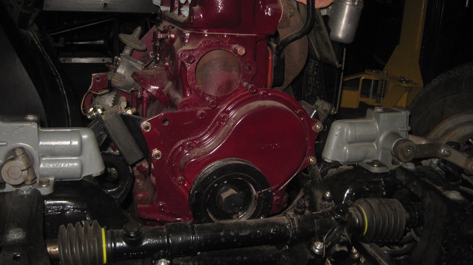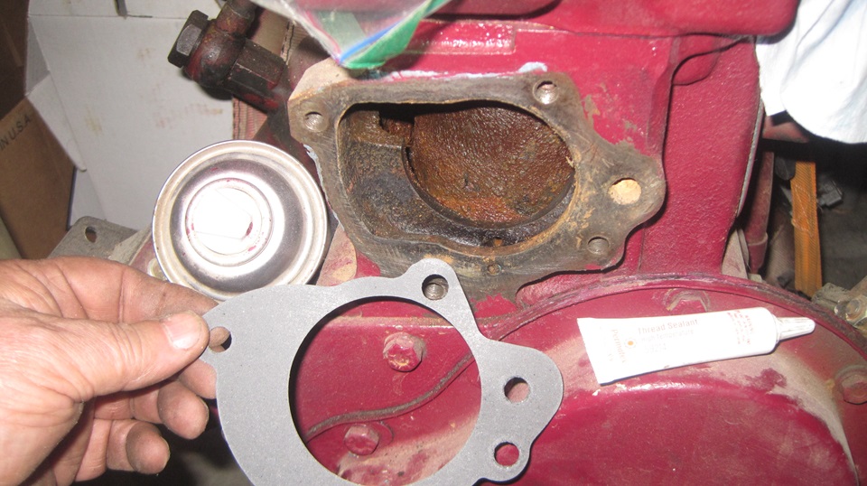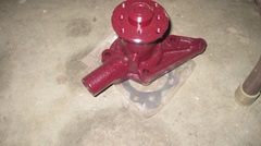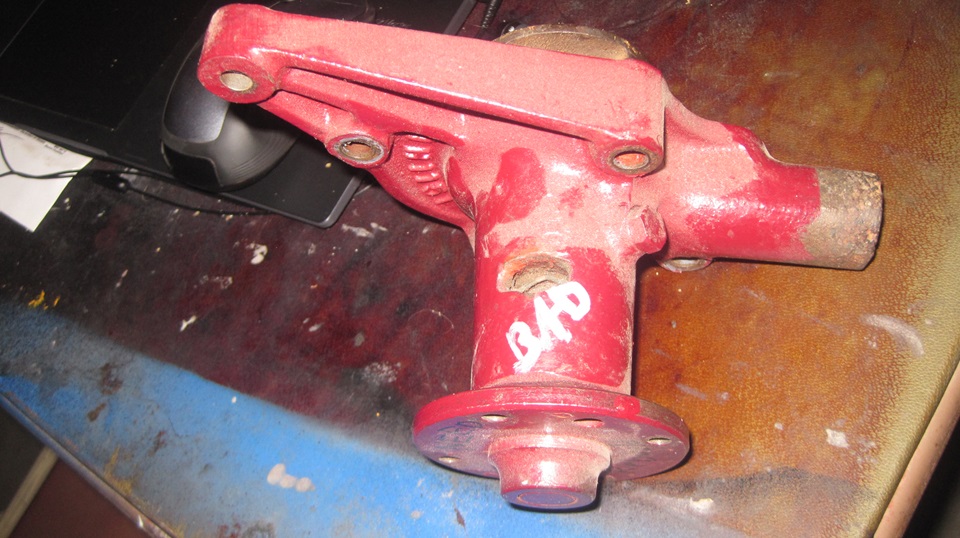 Meanwhile, I was getting tired of stepping over a new water pump I had painted on June 28 (when we were half way through repairing the deer strike damage). So I took a few minutes to install it on the spare 1600 engine (the one we reassembled and borrowed and drove for several weeks two years ago). New gasket and thread sealant on the bolts, good to know that's done, and the bad water pump can be retired. As that engine is getting back toward being serviceable again, we just freed up a bit of valuable floor space. And yes I know it still needs a crankshaft pulley.