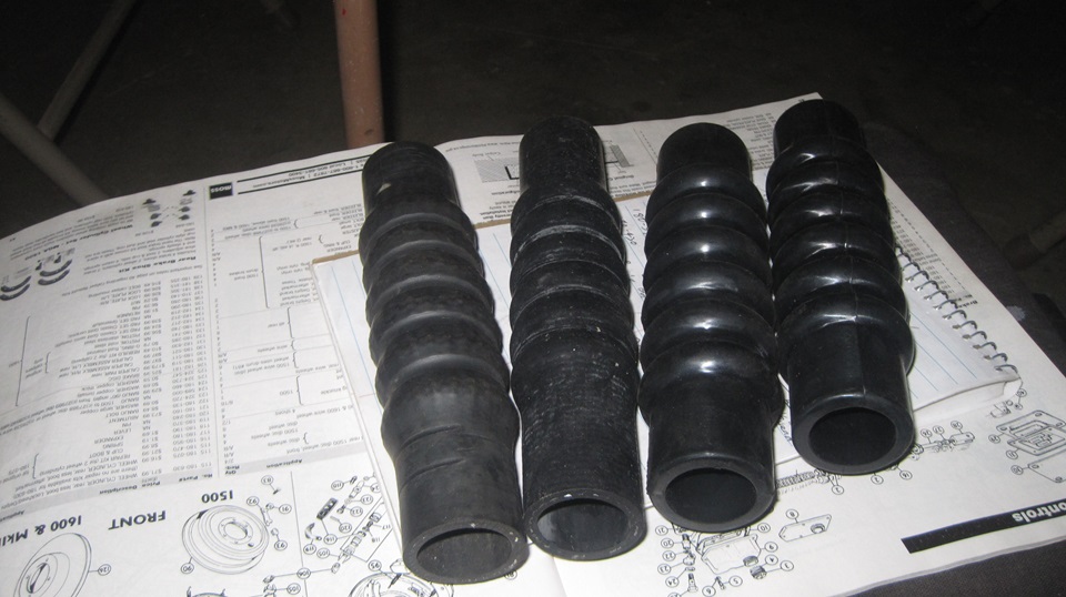 Next thing we can install on the rolling chassis is new steering rack gaiters (rubber boots) to replace the perished garbage rubber parts from Moss that never made it out of the shop before falling apart, even when never exposed to oil.