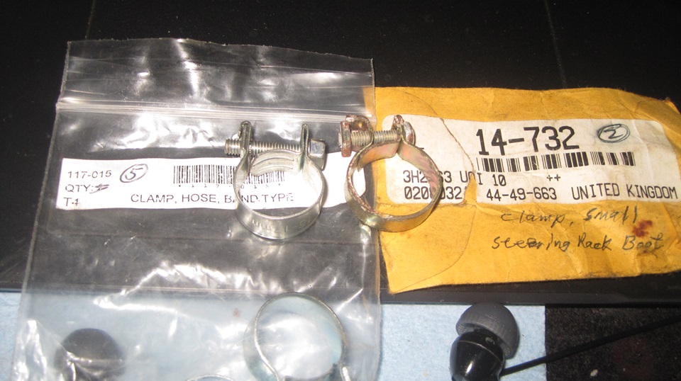 procured from Victoria British (back when they were still in business). This is the best part, but also the last original style part I have, so I will keep it for future reference. The slightly wider clip on the left, sitting on the Moss Motors source envelope, will have to suffice today, as I have plenty of those in hand.