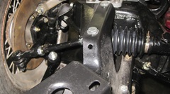There it is all buttoned up with new boots and fresh oil inside, ready for front end alignment (whenever). Sweep up the remains of the old rotten rubber boots for the dust bin. And there is this neat metal clip for the rear axle, just to remind us that we have not finished the rear brake pipe installation yet, maybe tomorrow.