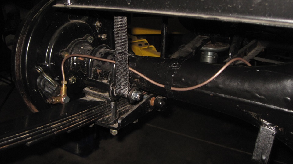 Time to install a new brake pipe on left side of the rear axle to replace the original one that was clogged at both ends. Not too long for that little chore. Time to call it a night and let the nylon rebound straps settle.