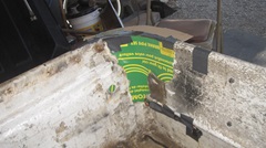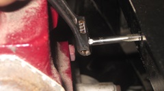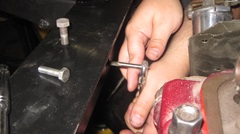 a handle, a reversible variable speed impact screw driver with a socket drive spindle, a 1/2-in socket, and a small dish of cutting oil. Dip a screw tip into cutting oil, thread it two turns into the thread cutting die, run it full in and back out again with the reversible driver, and drop the screw into the finished parts bucket. For the occasional screw with extra dirty or damaged thread, it may require a couple seconds of impact driving to push the screw through the threading die, then run it in/out a couple more times to get the thread clean and free running. Seemed to be a couple of slightly stretched bolts, but I think we saved them all.