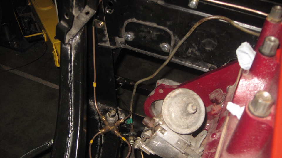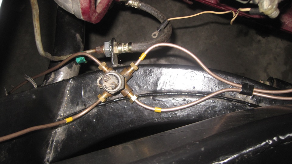 A few more minutes getting the brakes 5-way hydraulic fitting with pressure switch installed. Intending to get the rest of the brake pipes installed tomorrow.
