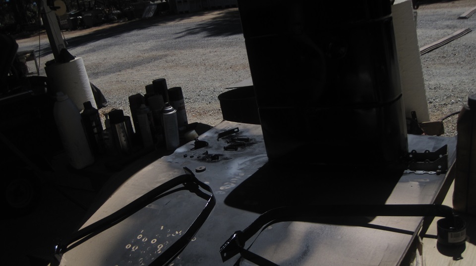 Up early again, having breakfast while finishing up the order list. Did get the order called in by mid day, hoping it gets delivered in a couple of days. Something else to dotoday. Haul out the fuel tank and hangers and bolts, get it sand blasted, and get some primer paint on it. Left to dry, plan to paint it black tomorrow. Well, we do have a couple days to kill.