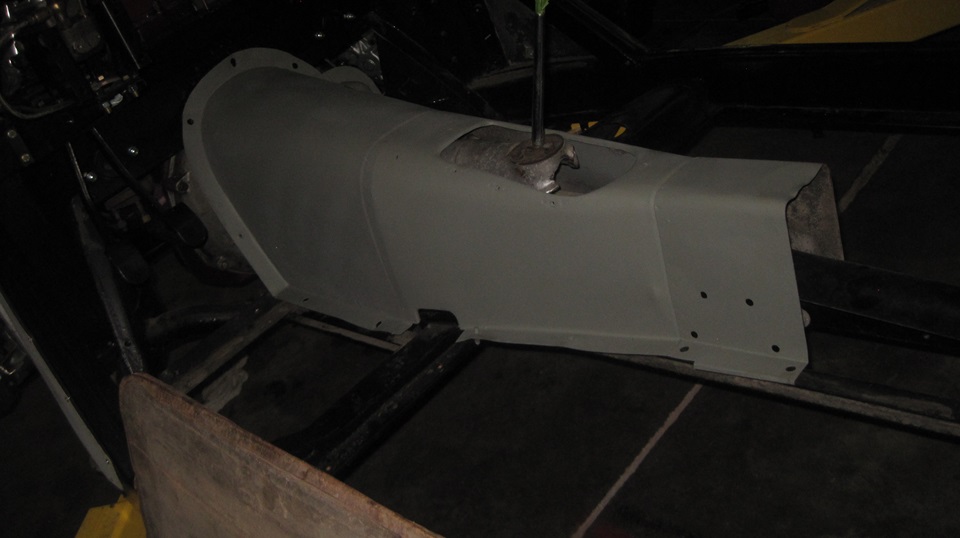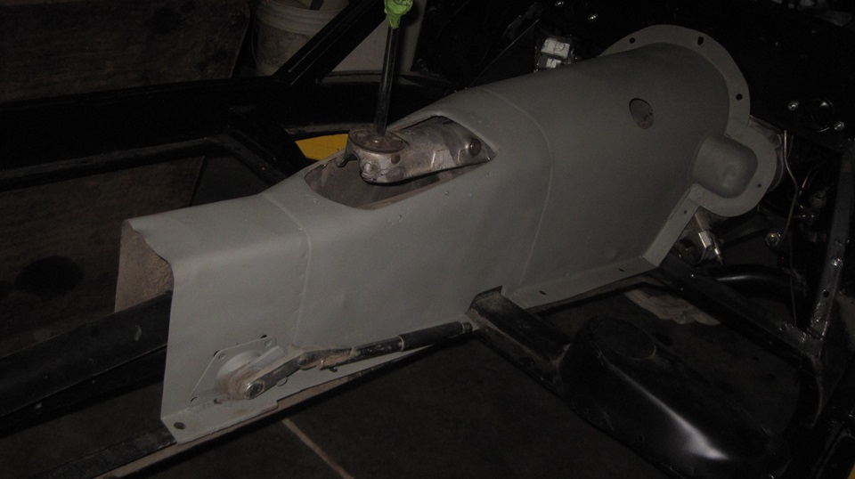 Back at the shop, there was the fuel tank and straps sitting inside. Stu had been working on blasting and priming the tunnel parts. This could be intereting, seeing if he can figure out how to make the MGA tunnel fit over the MGB 4-synchro gearbox.
