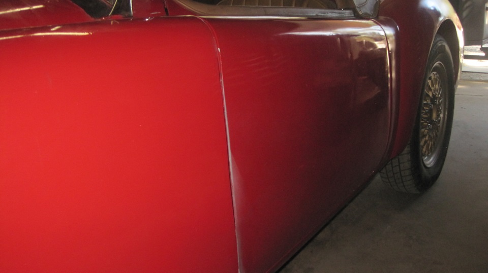 After fighting too hard on the passenger side, we removed the door on the driver side and reinstalled it after the door seal was finished. But that's okay, as we are by now pretty good at R&R of the doors using four hands and a power impact screwdriver. First time closing the doors we were very careful not to get the front post seal caught in some untenable position. It was moderately hard to slam the door to compress the rubber tube all around, but not half as hard as the old Moss seals with the fatter tube. When we did finally get things aligned and tightly closed, we swore an oath not to open the doors for at least 24 hours to hopefully let the rubber seal set so it might stay put and allow easier closing next time.