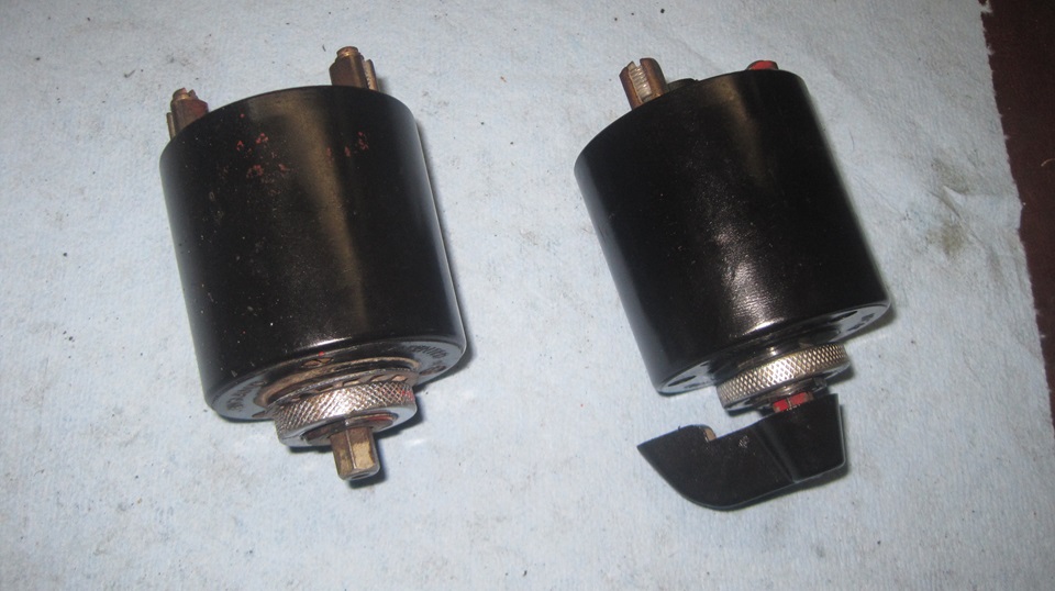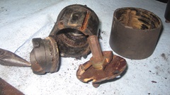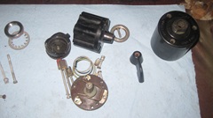 When we disassembled switch #3, we discovered it had a different contact arrangement with a rotary contact plate instead of being cam operated. It had the same style piston with a good leather seal which we could use elsewhere. The housing was okay, and could be interchangeable, except it had hex terminal blocks in back (like the junk #4). After due consideration, we thought we just didn't like the hex posts, so we wouldn't use that housing. The front shell had a counterbore inside to accommodate a different input actuator shaft. and the special input shaft was missing (not there when we disassembled it). Without the special input shaft, all of the rotary contact parts could not be used. Everything in the front of #3 with rotary contacts was different and incompatible with the more common style cam operated switches. So the only part we saved from #3 was the piston with good leather seal.