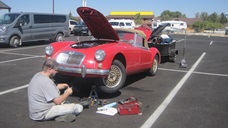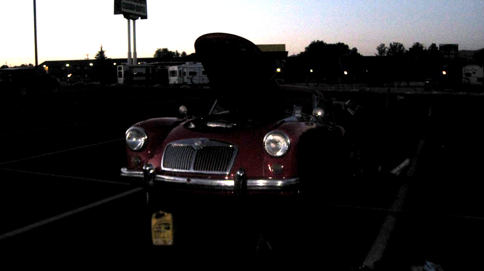Then Stu had to be somewhere else for a while, and came back later. We had some time to sit and chat some more, clean out the fridge, eat the last of the food, and finish packing the trailer. in the end we bailed out of Murphys, CA heading east at 6:30-pm, meaning we wouldn't clear Ebbets Pass before dark. the MG ran through the steep hills and tight switchbacks. like a champ, drove the last half hour through the trees after dark, and in just over two hours popped out of the pass into Minden, Nevada for a pit stop and fuel. Running well, feeling good, we continued on for another hour plus to a Love's travel stop on I-80 in Fernley, NV for late dinner. From here, about 1850 miles on I-80 (boring?) to northeast Illinois. We will not be there by Sunday for the British Car Festival,but we should make the Wednesday Night Garage Club by Wednesday.
