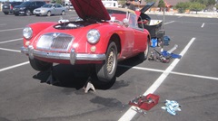 Quick situational analysis, small fuel stop town in the desert, one NAPA store that cannot get the parts we need, no work space facilities, so we don't want to pull the engine out of the car. Doing triage with a time limit.Most expedient plan is to express deliver new rod bearings, drop the oil pan to replace at least #1 rod bearing, inspect the crankshaft, hoping it is still good enough not to eat a new rod bearing right away,and see how far we can carry on. immediate hitch in the plan is being 4:30-pm Pacific time, it is after hours for ordering parts, and it is Friday, so we likely cannot order parts until Monday, and next next day delivery in the dessert is likely to be 2 or 3 days. The Moss Motors is definitely closed for the weekend, cannot ship until Monday. On the outside chance, I called Scarborough Faire in Rhode Island, three time zones to the east, and someone answered the phone at 8:30-pm EST. Really. I explained the situation, and they had the rod bearings in the correct size, but too late to ship by the common carriers. However, They have access to USPS mail drop at a local McDonald's drive-up window open until 10-pm. Wow. Give it your best shot, and we will deal with what ever happens.