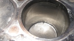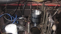 One by one, disconnect a big end bearing cap, push the piston out the top, inspect and remove old piston,and install a new piston on the con-rod. Clean and inspect the cylinder bore, oil the new piston, apply ring compressor, drop and push the new piston down the bore, and reattach the big end with a new con-rod bearing. Rinse and repeat 4X. Photos to follow. I was taking lots of pictures to review later, most of them ultimately not shown here. We were lucky this time that none of the cylinder bores had any significant scratches. in fact, there were still very shallow honing marks that had not polished complete clean from the last honing and new rings 15,000 miles earlier. Must have been coarse honing, I didn't do it, but we know who did. We decided not to hone the cylinders again, perhaps the remaining fine hone marks will hold some oil on the cylinder walls during seating in of the new rings. Incidentally, all of the rings on these NOS pistons are cast iron, no chrome edges, so I have hopes that the rings may seat quickly.