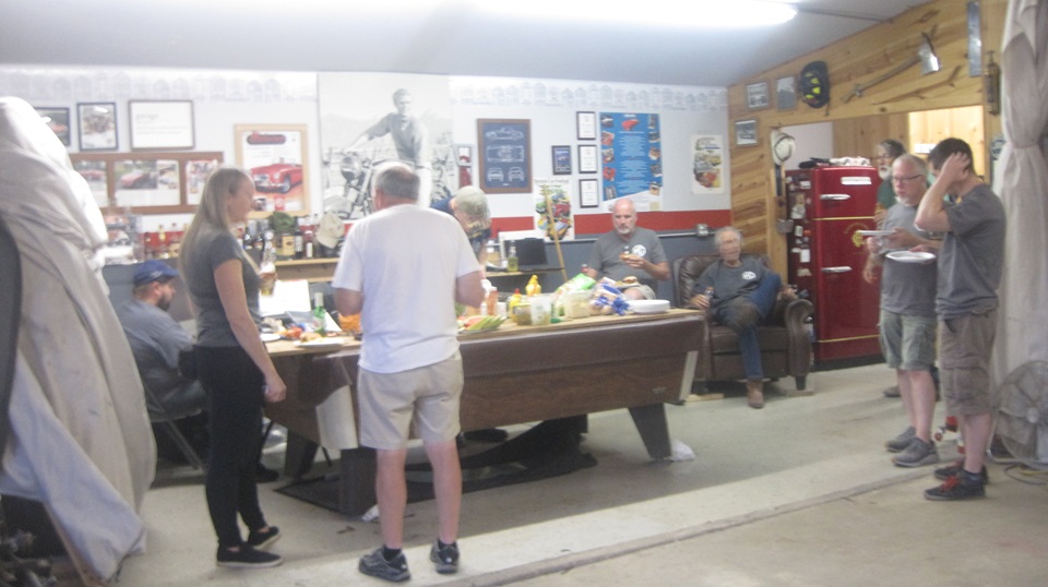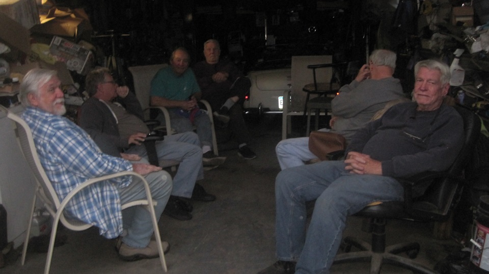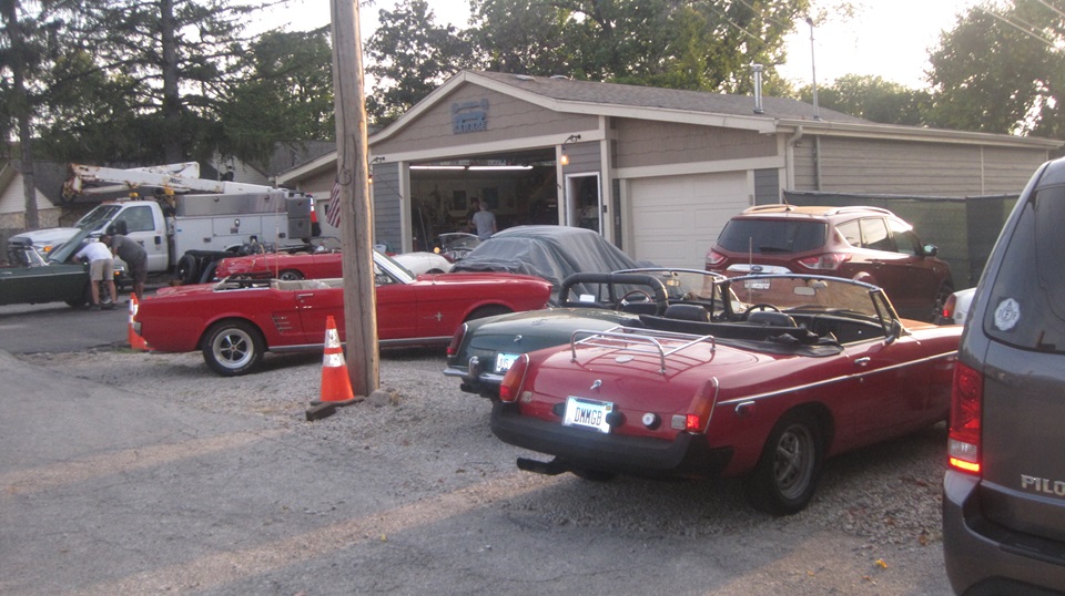 Most of the day a few miles down the road in New Cumberland PA. Heading south at 530-pm to join friends for Tuesday tech and social night at Darrell's Garage in York, Pennsylvania. Clutch didn't slip much, and it didn't foul out any spark plugs. Oil level only down a little, so I suppose he car is okay for now The Spitfire just needs a tune up, maybe. Say hello to Darrell Lutz. Ten seats in a circle, plenty of social, not so much tech tonight. Seems like most of the cars are ready for the Saturday car show.
