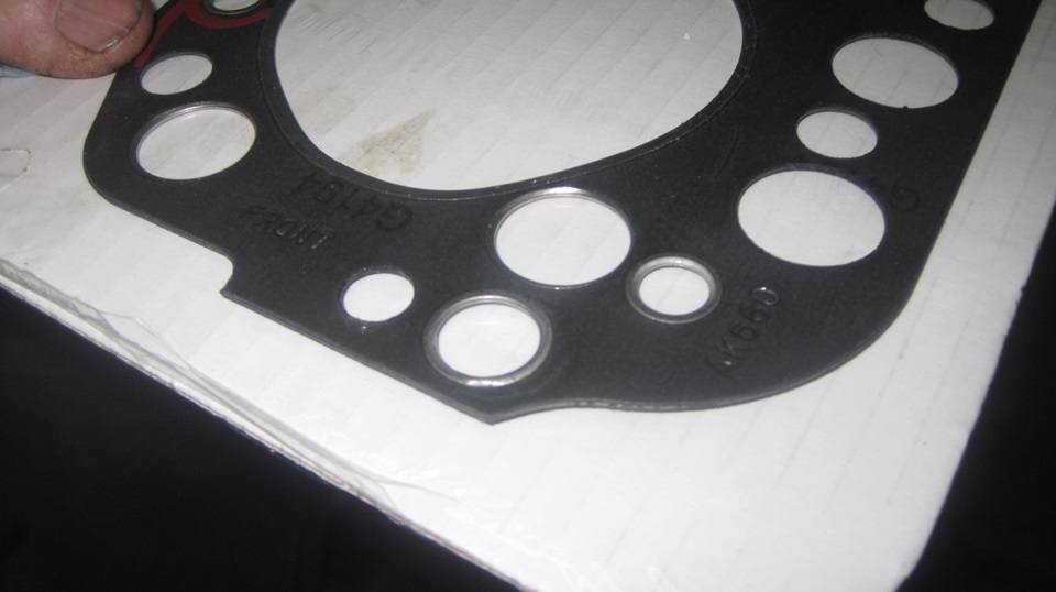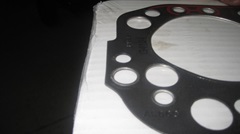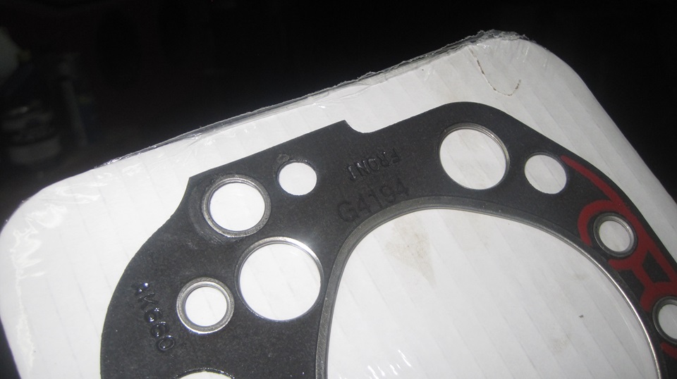 There was a new Payen head gasket, about to be installed on the engine inside. This gasket had a strange blemish like extra thickness black fiber on top next to the forward most water passage hole. Nearly impossible to catch the fault in a photo, this one will have to go back for exchange. These black Payen head gaskets have been suffering poor quality recently.