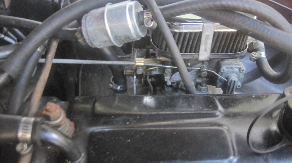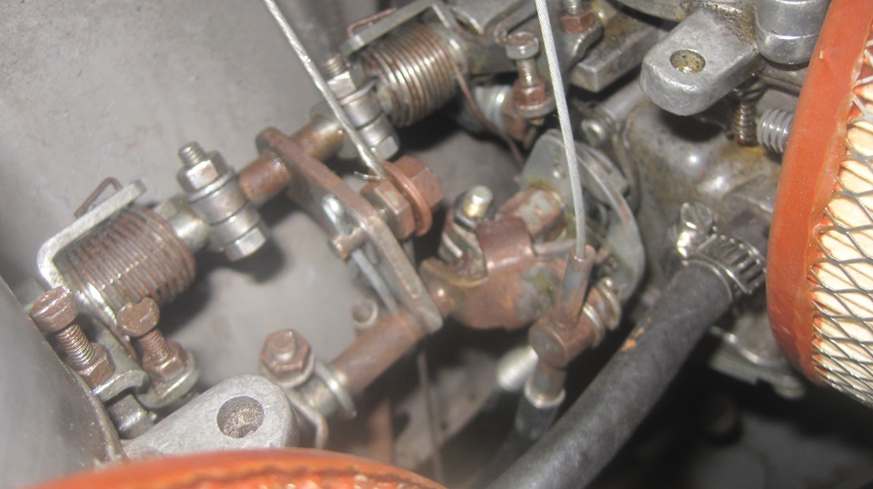 A little work on Tina the wannabe race car, beginning with finish sorting out of carburetor linkages and return springs. Still