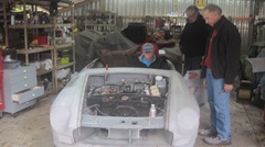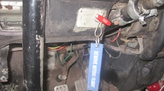 The guys were into a little more work on Tina today. First was to install a bracket to fix the exhaust pipe under the floor pan so the pipe wouldn't hammer on the floor when driving. Don't know if they finished or not. Not sure if the electric oil pressure gauge was reading properly, so we wanted to use an analog pressure gauge to get a true reading for reference. Found a Smiths single function analog oil gauge in the attic, and one of the guys claims to have a connector pipe for it at home,and will bring it next time.