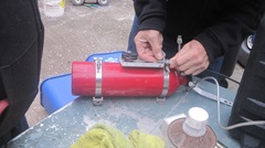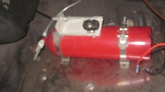 Installing the Halon on-board fire extinguisher. Find a suitable location to put the pull handle within easy reach of the driver.