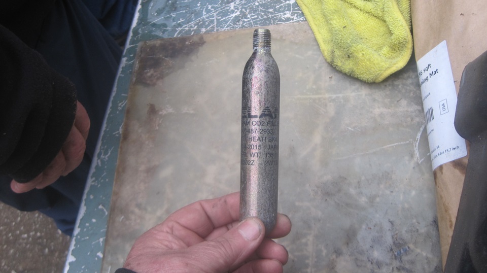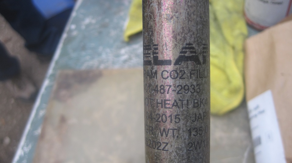 My first formal introduction to the fire safety bottle, about to be installed in Tina. The red fire extinguisher bottle is filled with dry chemical powder, not pressurized, but can be weighed to verify amount of content. The pull cable is attached to a lever which pushes a sharp pin to puncture a CO2 cartridge. When punctured, the high pressure liquid CO2 immediately escapes, into the low pressure powder cylinder, expanding to large volume of gas in the process, which quick;y expels the dry powder through a pipe into the engine bay to smother a fire. And there goes another $240 out of pocket to refill and re-certify the dry chemical powder bottle and replace the CO2 cartridge. Cleaning up the powder mess and engine bay and repairing any mechanical or electrical damage is additional. We think installation will be a job for tomorrow.