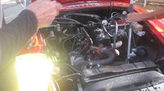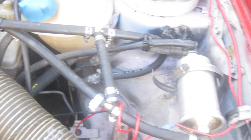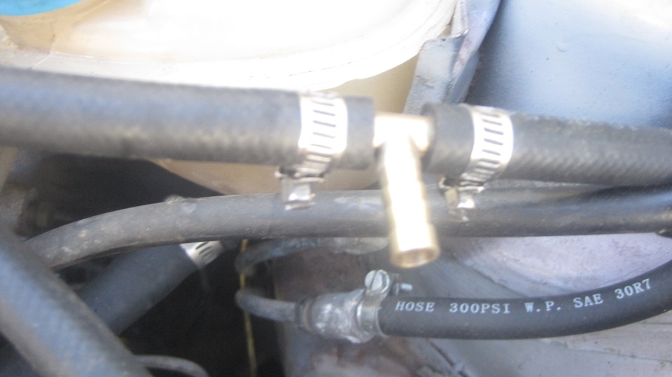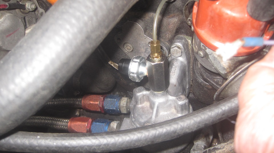 Guys doing more work on the racing Rabbit. Racing tech inspection wants a fuel inspection port, so cut the low pressure fuel return hose to install a Tee with a short hose and a hose plug. If the inspector wants to check fuel quality, they can loosen the hose clamp and pull out the plug to get a fuel sample.