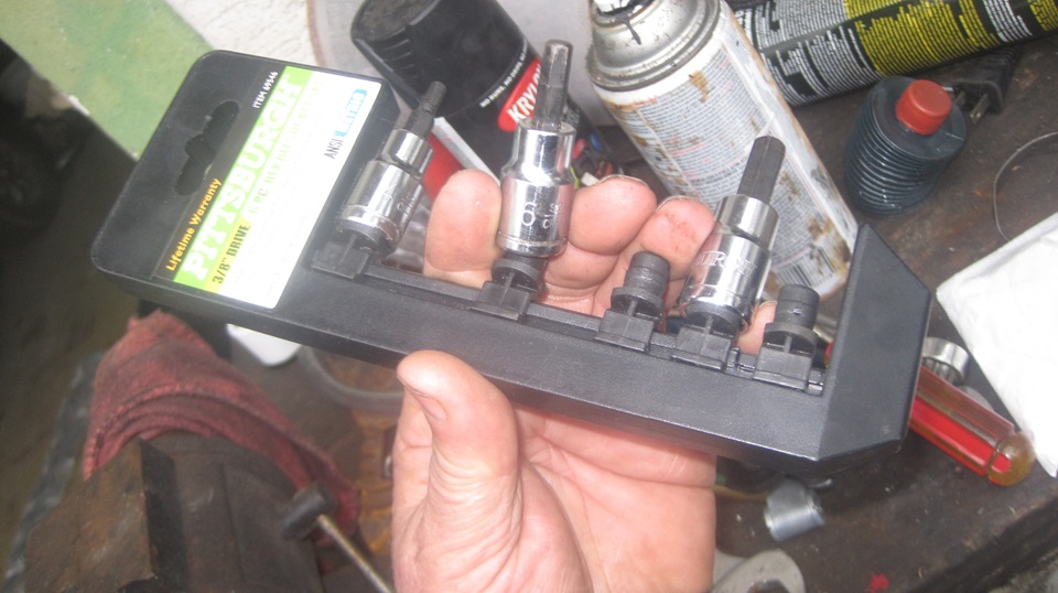 The racing Rabbit, the one with engine still in it, had an issue with low oil pressure warning light, which would come on at low engine speed when it shouldn't. The problem was that the switch was located in the cylinder head near the valve drive parts which were limited to lower oil flow, so the oil pressure would drop dramatically at low engine speed. The solution is to relocate the switch to the oil filter assembly where it would see the same high pressure as the dash mounted oil pressure gauge. Then the switch would not trigger the warning light until oil pressure drops after shut-down, or of course any time oil pressure might be lost when running. After reconnection, fire up the engine to verify that the low pressure switch and warning light work as intended. -- I took a little available time to organize some tools (a never ending job). There were some new hex drive bits that appeared to be on a nice plastic storage fixture. Alas,it was really a retail security anti-theft device where the sockets could not be pulled off with fingers, so spend some time with vice and screwdriver to tear the sockets loose, toss them in a tool drawer, and pitch the cute plastic fixture into the nearest dust bin.