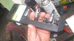 One of the TR6 had a no-blow hooter. We found a few problems here. The telescopic spring loaded contact brush in the steering wheel had a broken/disconnected wire inside. I fetched a replacement part for MGB from the Magic Trailer, but it was too short for the TR6.so put it back. Someone else finally turned up the correct part, no idea where it came from, but nice to have friends.