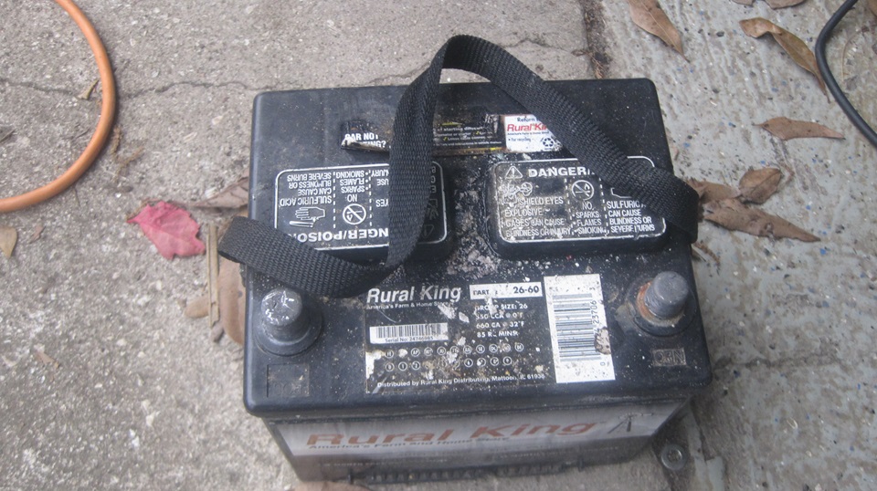 While trying to start the Rabbit, it would barely crank over, no start. Discover my lithium battery jumper box, fully charged, is not up to the task, so put another one of those on the shopping list. Pull out my trusty battery tester which is perfect and never fails, to verify that the crusty battery is indeed very bad. Voltage goes from 12 volts to 4 volts when cranking, and the tester shows at best 135 cranking amps capacity. Out with the old and in with a new battery, making the Rabbit very happy. Put a charger on the old battery for over night, and we will test it again tomorrow to verify that it will still test bad.