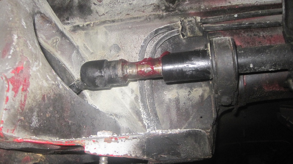 All back together with new rubber bushings, trunnion seals and thrust washer both sides, we hope to have banished the funny clunking noises.