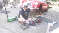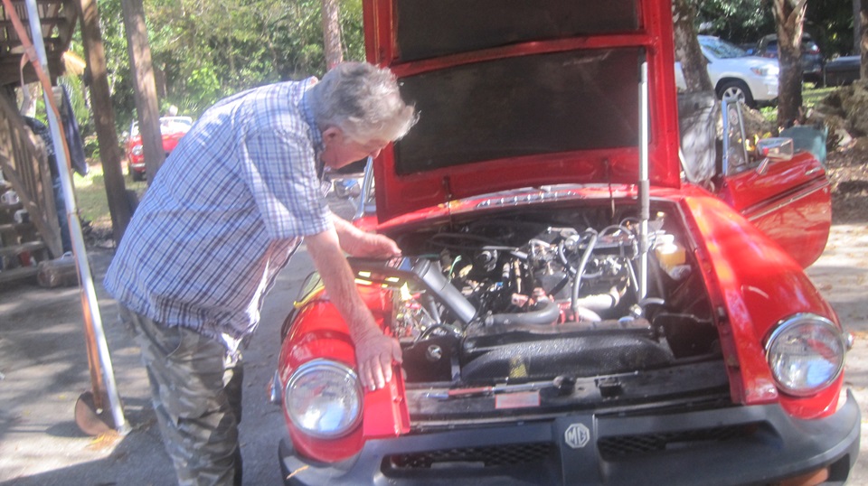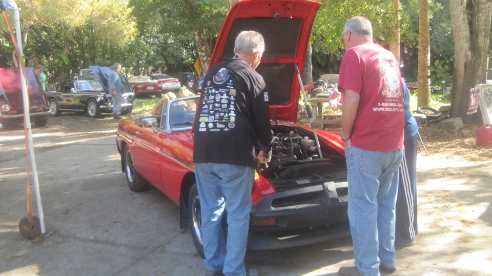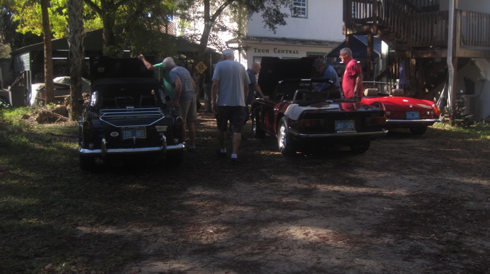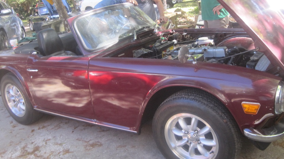 Lots of activities with several cars being worked on. There were two TR6 with dual Weber downdraft carbs, both getting slight tune-up adjustments.