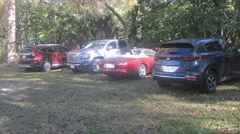 Friday morning at Tech Central with very good weather brings out a bunch of tech tinkering comrades, so parking is filling up fast. Before i could get the second picture I was shanghaied to check out this modern 4-door. The car is several years old, recently purchased from a legitimate car dealer. An odd electronic gadget is stuck on top of the battery, been there since the car purchase. Two connecting wires to the battery terminals for power and ground, and two more wires in a small plug-in connector which is not connected to anything. Also a picture of what may be an antenna symbol with a printed note, "This side up". Bit of a puzzle, looks like a possibly amplified antenna, possibly part of a GPS tracking device (which is not plugged in here)? Anyone have a better guess?