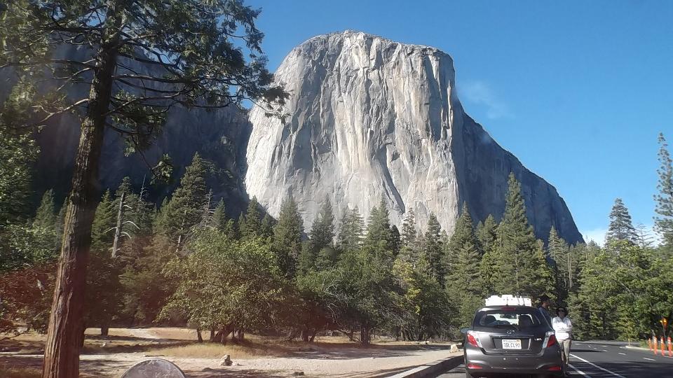 I don't recall the exact point where we passed the entrance gate, but the entrance fee was interesting. $30 for one day, or $80 for a seasons pass for all National Parks. Or my favorite, $10 for a lifetime pass for all National Parks for seniors over age of 62 (including everyone in the car with you). Bingo, we have a winner. As for many National Parks, vehicle traffic is dense and often slow going. Yosemite is a nice place, although the great falls was just a bit disappointing due to limited water flow (lack of winter snow) and evening shadows. We gave the Yosemite Valley loop road a slow and thoughtful sight seeing tour before we headed out.