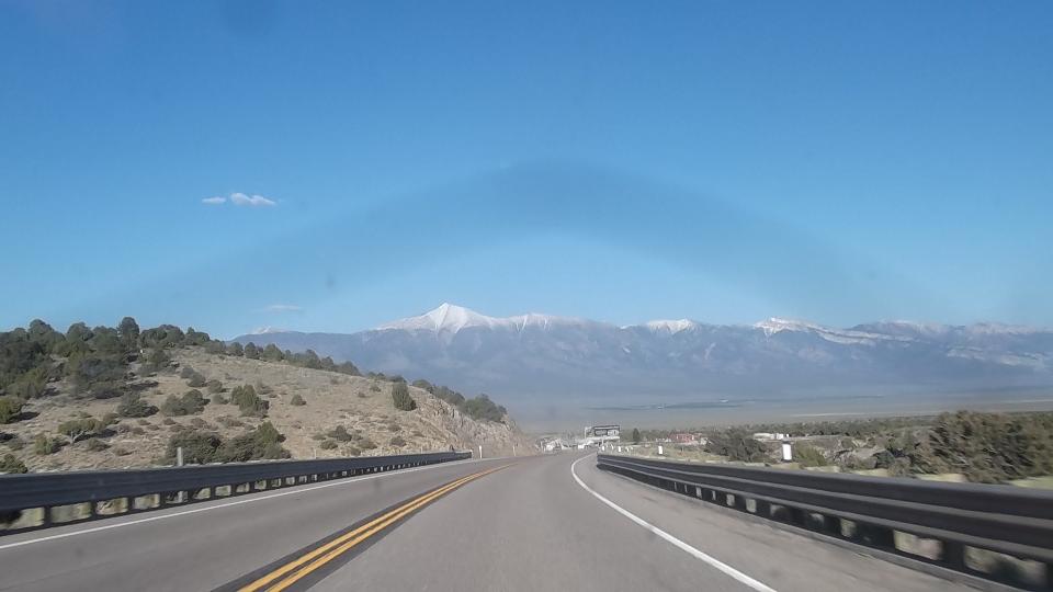 Then goodbye Nevada, and hello Utah (next services 83 miles). Also change to Mountain time and add an hour to the clock. By this time we were following US-50, "the loneliest road in America", and we like it that way. Mountain passes here were mostly in the 6000 to 8000 foot range, so I suppose the valleys were close to a mile high. With nightfall came some problems with headlights again, so cut and crimp to replace a few loose snap connectors with gas tight butt connectors.