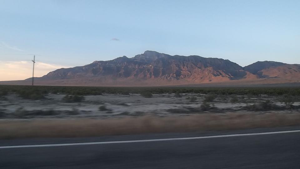 Half an hour to make our way back to CA-120, then east again on Tioga Pass Road (CA-120). This ran 60 miles in 80 minutes (45 mph average) until joining US-395. Several miles south CA-120 splits off again heading east another 51 miles in 51 minutes (cooking the curves a bit) until it terminates at US-6. With nightfall it nice driving into the full moon. At least one of the mountain passes was just shy of 10,000 feet (but we weren't keeping track of them all). US-6 East is mostly flat for 80 miles in 78 minutes (if you believe Mapquest) which put us into Tonopah, Nevada for the night (seeing the city lights from 20 miles out). You may notice no mention of interstate highways.