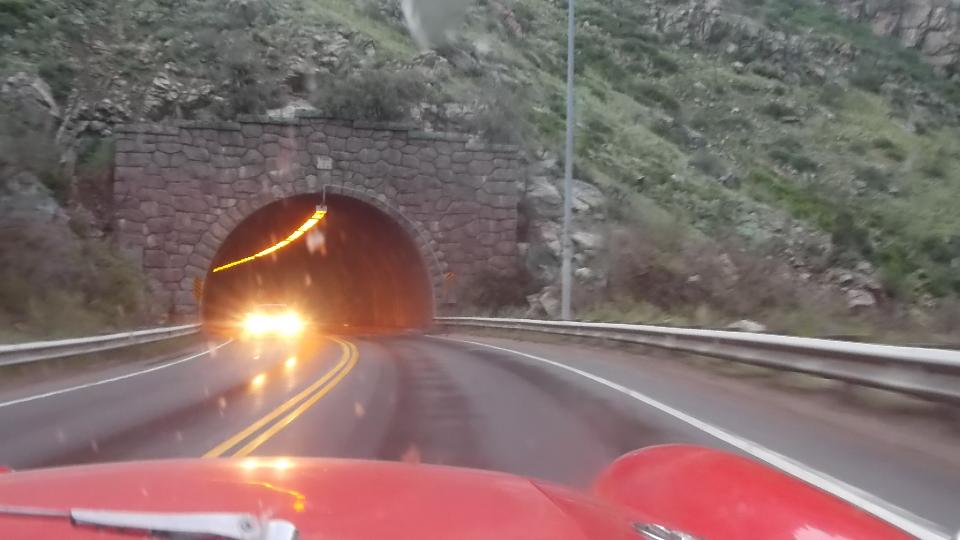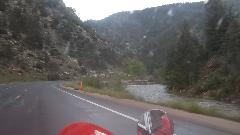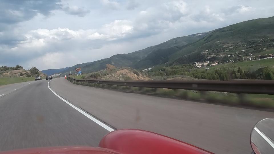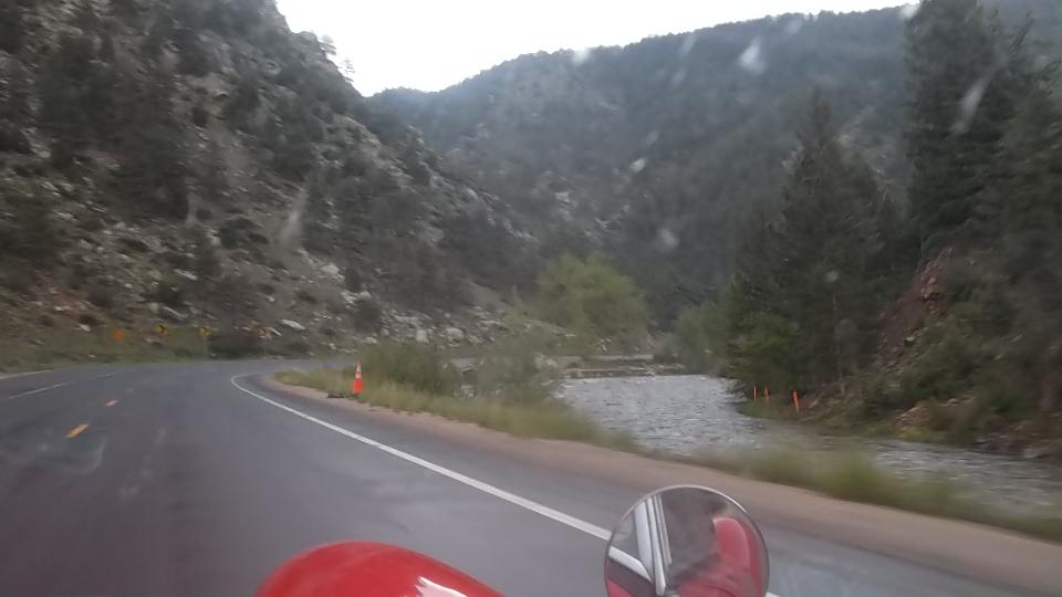 Approaching Denver we took a shortcut on US-6 for 15 miles followed by the CO-58 expressway through Arvada to get back onto I-70. This short stretch of US 6 is mostly 45-mph speed limits, and it is very delightful at that speed. It winds through a mountain valley commonly running beside a large creek with vertical rock walls on the opposite side, at least once through a tunnel. We had just missed a rain storm, wet roads and misty. Such a wonderful reprieve from a long day on high speed expressways. Tonight we stopped in Limon CO, an hour east of Denver. That decision was intended to avoid driving into a severe lightening and hail storm..