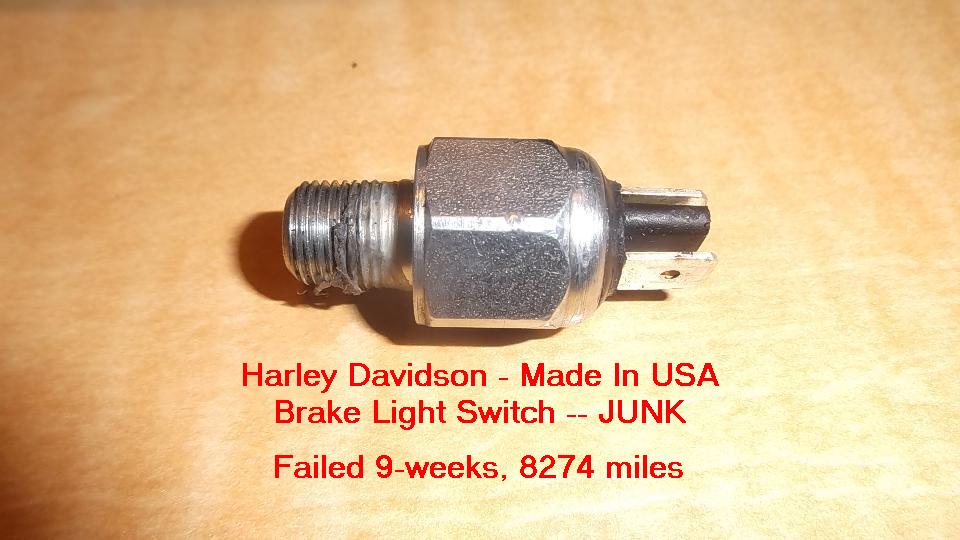 Replaced the failed Harley Davidson brake light switch today. Will have to cut it open later for inspection. Replacement was NAPA Echlin SL147. This one has spade terminals, just so I didn't have to change the wire terminals again.