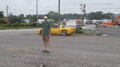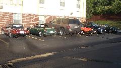 Typical gimmick rally, beginning with a couple of MG related questions and several unrelated questions with no clue what the answers will be used for (keep in mind the rallymaster is god). Route instructions were fairly clear, questions in sequence with very easy answers, so we expect there will be a six way tie for first place (again as usual). Can't wait to see what they invent for a tie breaker after the rally is over, since there was no tie breaker defined in advance, Then there was this "VRY YLO" Corvette laying for us at a mid rally checkpoint, requiring us to do something silly with our MG for a picture to be "judged" by committee later (a primary part of the tie breaker I suspect).