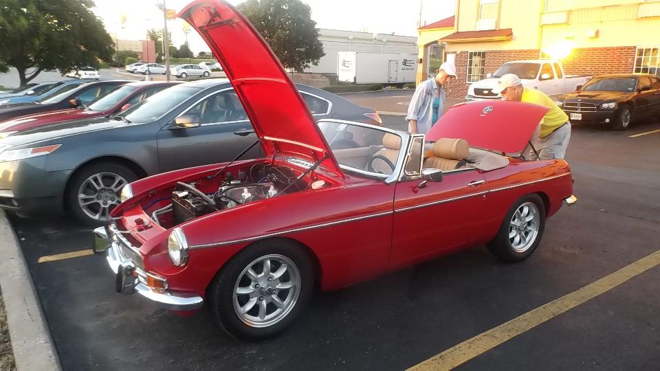 We had a hot afternoon run across Missouri west to east, landing in St Louis for an evening meeting with MG Club of St Louis (25 people present). Good meeting, and some new friends.