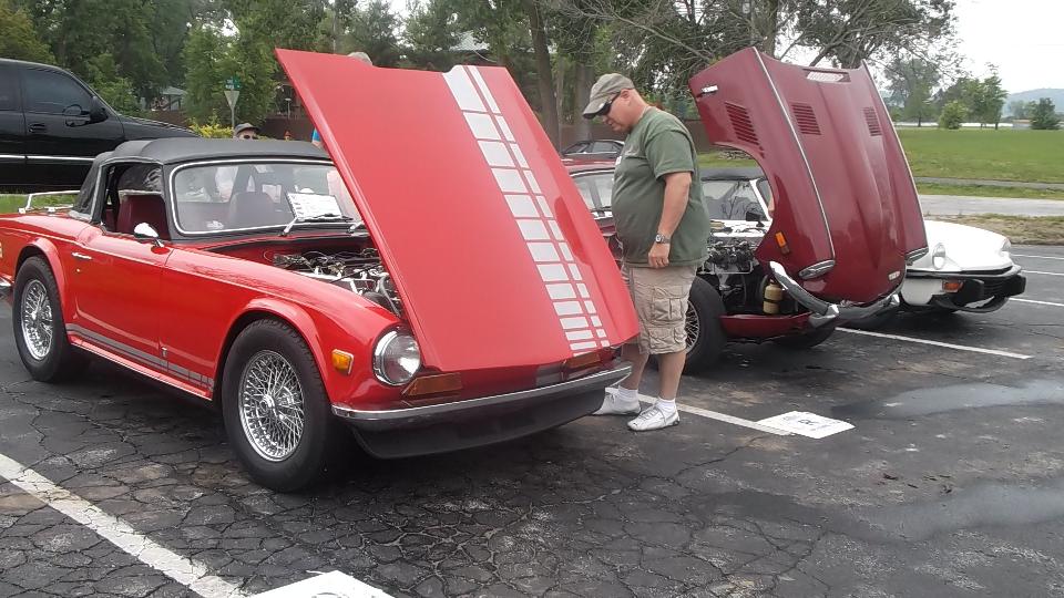 Triumphs, TR3, TR4 TR6, TR GT6+, Spitfire, and a Morgan Plus4. About 50 British cars in all.