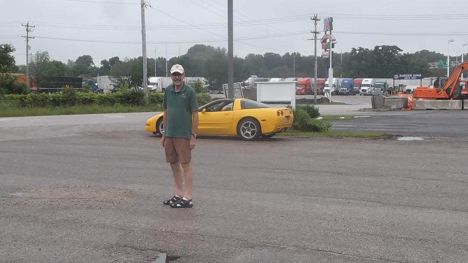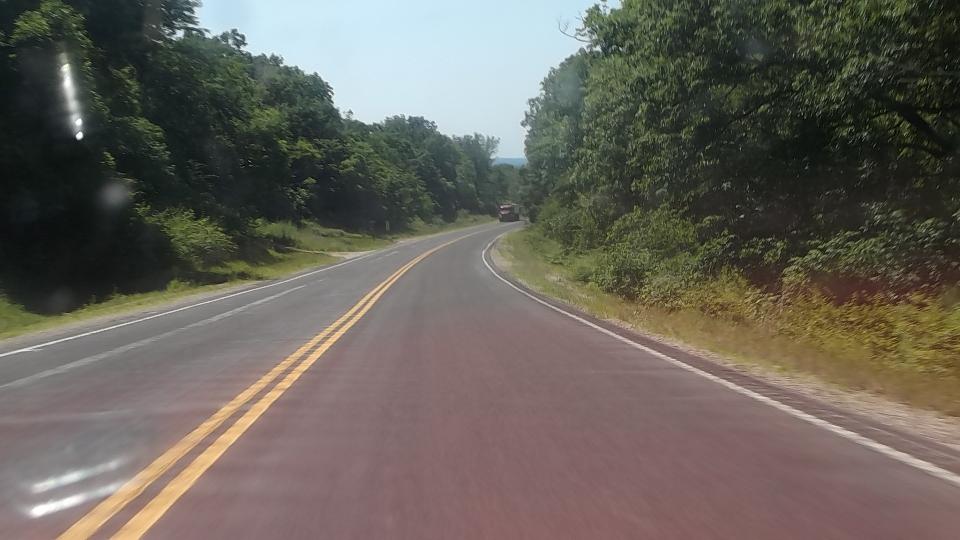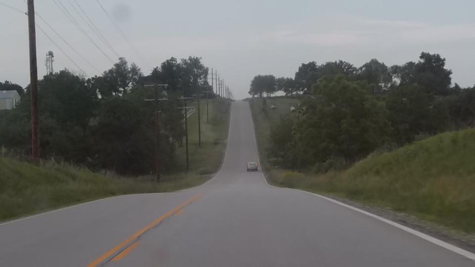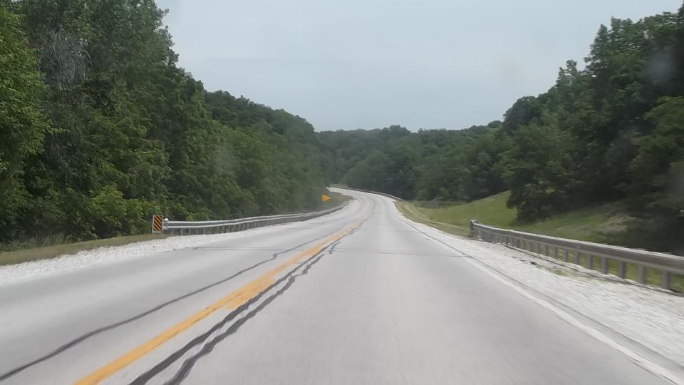 Next morning, say hello to Robert (on his way to work). That gravel road is "Long Boulevard", the street that he lives on. Then nearly 30 miles of MO-79 heading south, which is quite pleasant where sparsely populated.