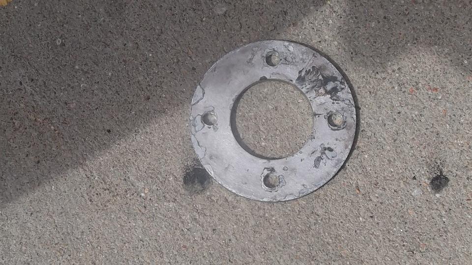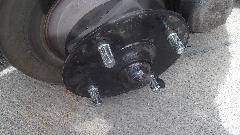 And then there was this little incident during fun runs after competition was over. The TR250 lost a wheel due to (1) thick aluminum wheel, (2) wheel spacer plate, (3) lug bolts too short, (4) insufficient length of engagement of the lug nut threads, (5) striping of the threads causing loss of all four lug nuts.