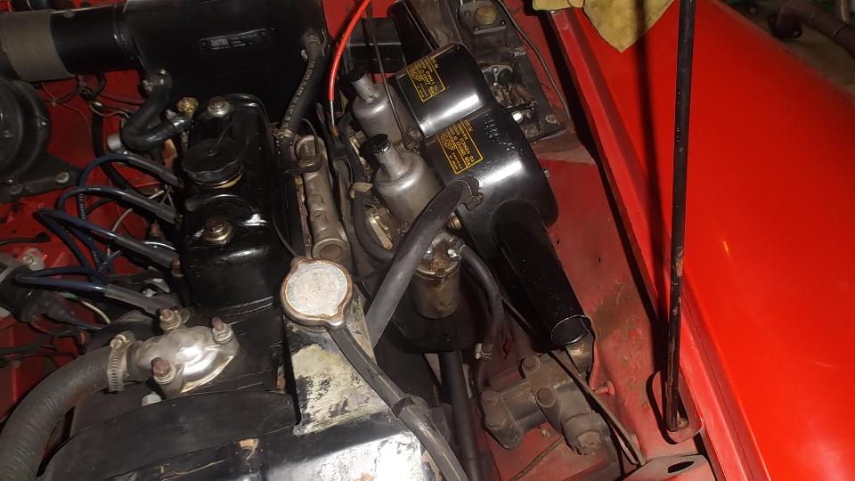Then there was a call for help for a '72 MGB, mostly original equipment with HIF carburetors. It had been running well for quite some time, until today when it began backfiring (presumably through the carburetors) occasionally at road speed. Owner had adjusted the front carb (easier to reach) very rich, and the backfiring stopped, but it then had bad idle. First business was to reset the carbs back to correct mixture to restore good idle.