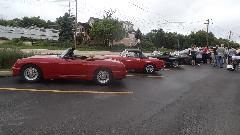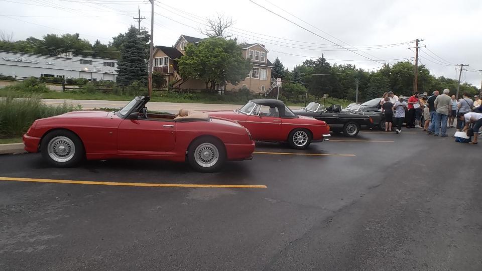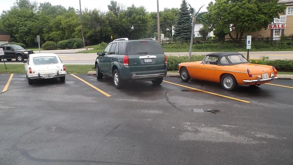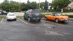 Rain, rain, rain, so the Austin Healey Gymkhana was cancelled for the second week in a row. This leaves the day open for "Lands End Trail and Rally" with Chicagoland MG Club. Drop navigator Elliot off with friends (Glen Ellyn, IL) for the day, and pick up navigator Seth Jones (Glen Ellyn, IL) dropping the trailer at his place, and high tail it up to Wasco, IL with intentions of giving it a jolly good go. Rain mostly ceased by the time we arrived. Count 12 cars for the "competition".