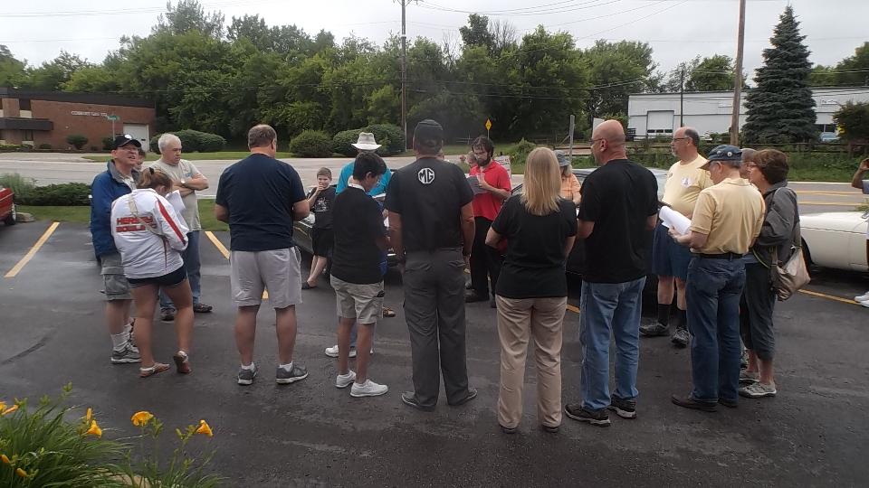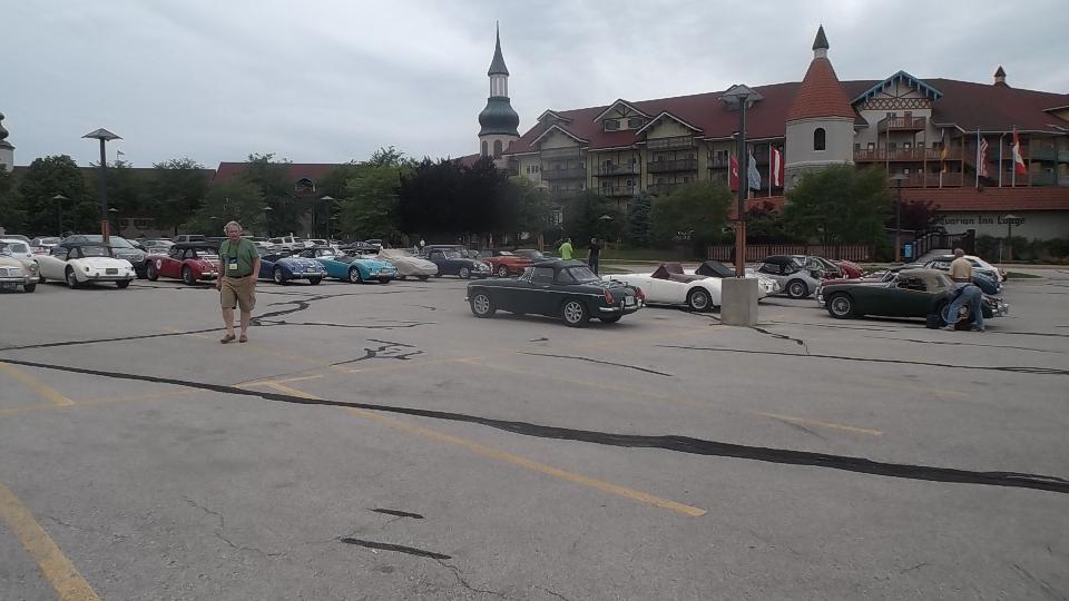 Early afternoon start was followed by a sprint across Michigan on expressways in the rain. We arrived at the Bavarian Inn in Frankenmuth MI at 5:30 pm to sun and humidity, and paid a late fee to register for NAMGAR GT-40. Some cars had arrived Sunday evening, many more arriving today for the first official day of activities. Out to the car park for some pictures, then inside for the light welcome dinner.