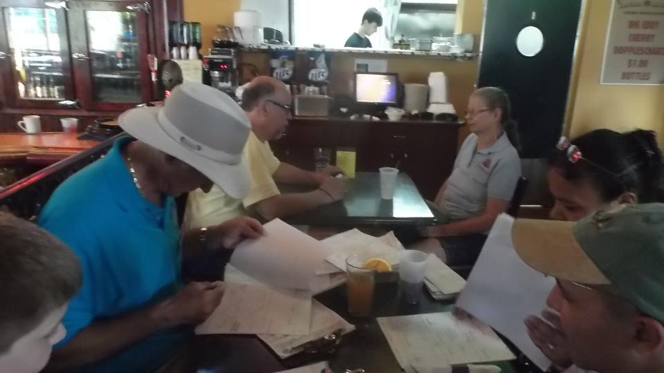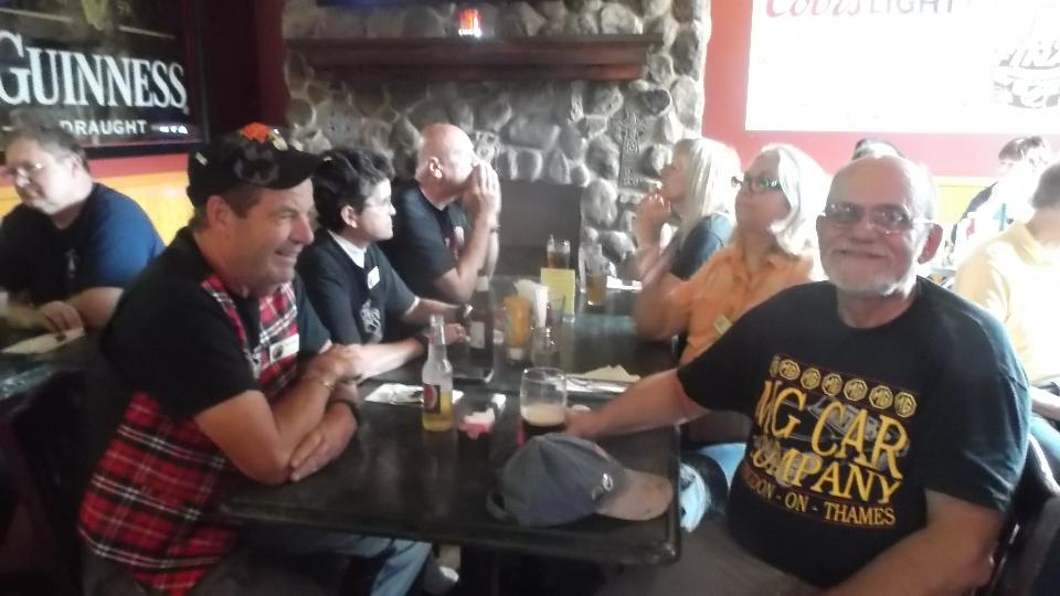 At rally's end we crowded into Rosie O’Hare’s Public House in Dundee IL for food and libation while awaiting rally results. As far as we know we had a perfect score with all answers correct, but it was no surprise when the first three finishing places went to other teams, no scores announced, no list of correct answers for the questions, no mention of ties, and no explanation of how the winners were determined. Perfectly normal for this club.