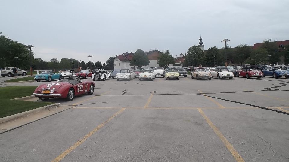 We were off to visit British 4X4 (Land Rover) in St Louis. The BGT and TR250 belong to employees. The rest are corporate or customer cars. The Austin America caught my eye, because I used to own one (45 years earlier).