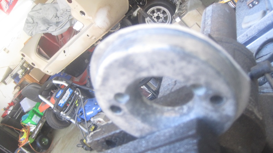 Feels like Christmas, five new packages to unwrap. New K&N air filters from Summit Racing, a new steel oil pipe from a friend in Arizona, two small boxes from McMaster-Carr with fasteners, and a box from Amazon with new turn signal flasher units, incandescent bulbs, white LEDs, Amber LEDs, and a 20-piece set of forged ignition wrenches in imperial and metric sizes. So nice to have good quality tools, and this in a nice small and durable canvas tool roll. More pictures of that toy later. ---Now get to work on the new air filters. These conical filters mount with a simple 4-inch hose clamp. They will be attaching to slightly modified alloy filter adapter plates from MGB 1962-1974. No other MGB parts, just the alloy base plates. Clamp the plates in a vice and have at them with an angle grinder with sanding flap wheel to remove the thin 4-1/2-inch diameter outer flange, getting down to the 4-inch pilot diameter.